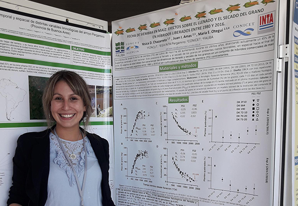 Chazarreta es licenciada en Genética de la UNNOBA y, en la actualidad, es becaria doctoral inicial del Fondo para la Investigación Científica y Tecnológica (FONCyT), con lugar de trabajo en el grupo Ecofisiología de Cultivos de la Estación Experimental Agropecuaria del INTA en Pergamino –Buenos Aires–.